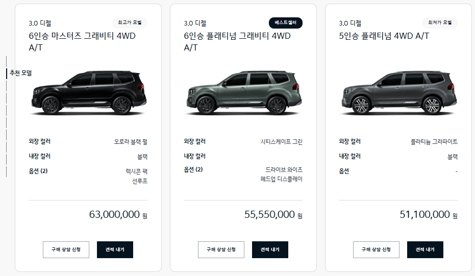 차량 가격(힘이 좋은 만큼 차량 가격도 무겁습니다.^^)
